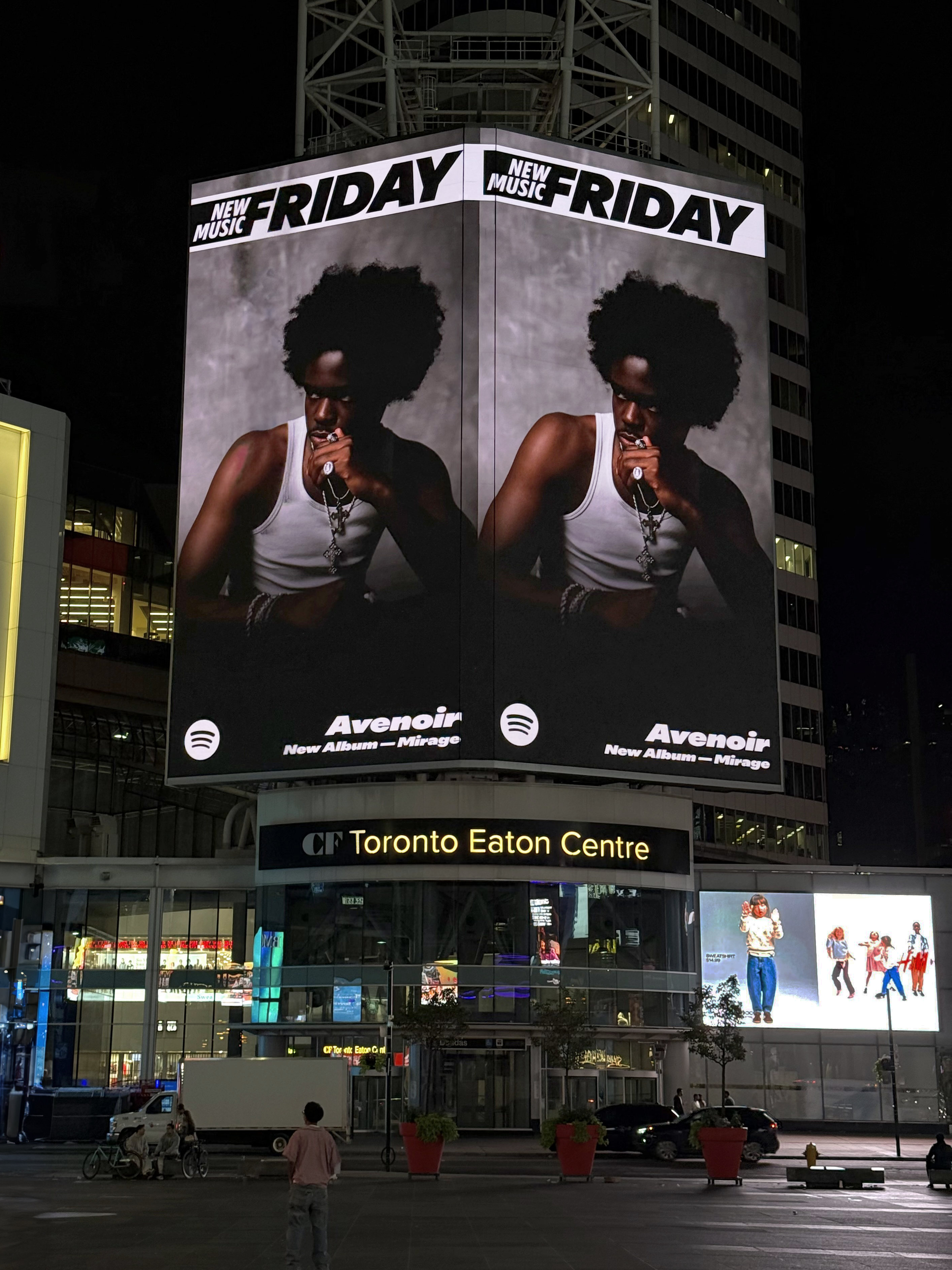 CREATIVE DIRECTION, PHOTOGRAPHY, SINGLE ARTWORK DESIGN, AND TITLE DESIGN FOR AVENOIR, “ALONE.” COVER OF SPOTIFY ‘R&B RIGHT NOW’ & ‘DND’ PLAYLIST. BILLBOARDS AT YONGE & DUNDAS IN TORONTO, CA.